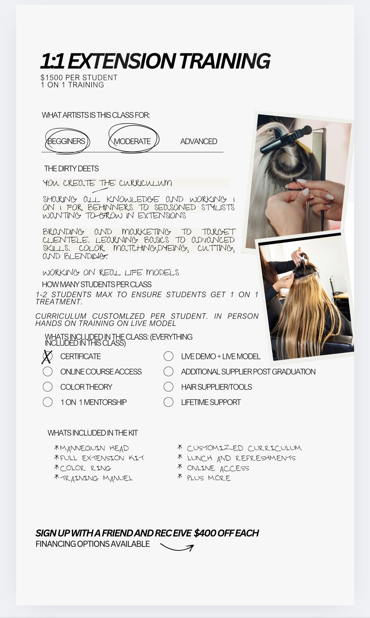 Whether you’re a beginner or a seasoned stylist looking to level up, this exclusive one-on-one training is designed to fit your unique goals. Learn everything from branding and marketing to advanced techniques like color matching, cutting, and blending—all while working on live models! 💇‍♀️